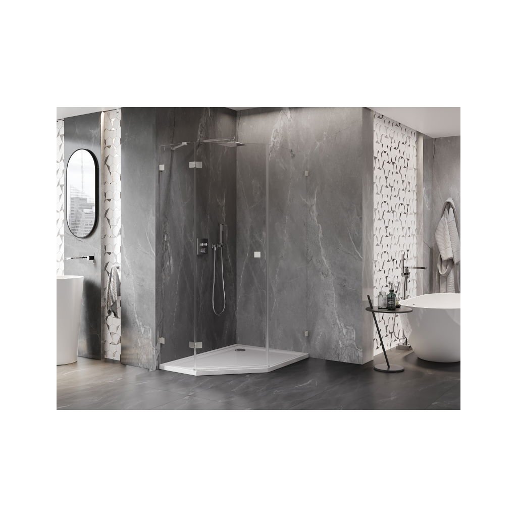 Mexen Lunar, pětiúhelníkový sprchový kout s levým sklonem 80 x 100 cm, 8mm čiré sklo, ocelový profil, 831-080L-100P-97-00-L
