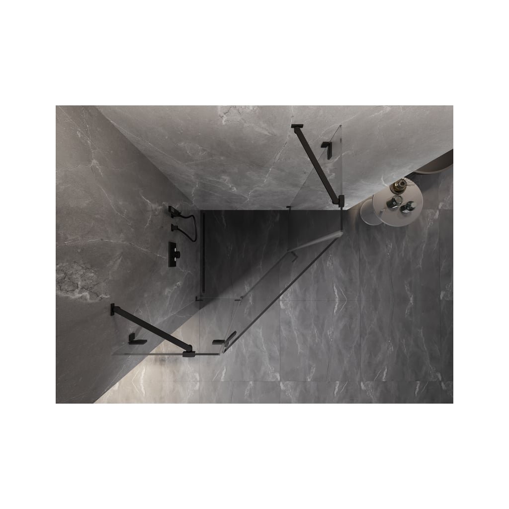 Mexen Lunar, pětiúhelníkový sprchový kout s levým sklonem 80 x 80 cm, 8mm čiré sklo, černý profil, 831-080L-080P-70-00-L