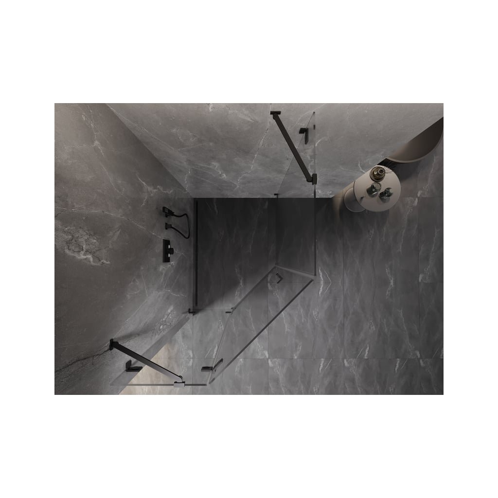 Mexen Lunar, pětiúhelníkový sprchový kout s levým sklonem 90 x 100 cm, 8mm čiré sklo, černý profil, 831-090L-100P-70-00-L