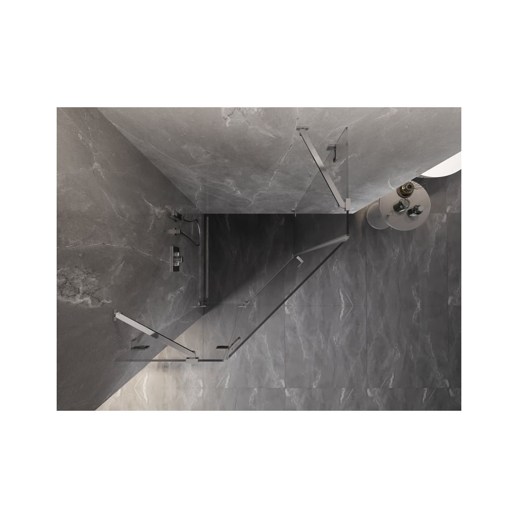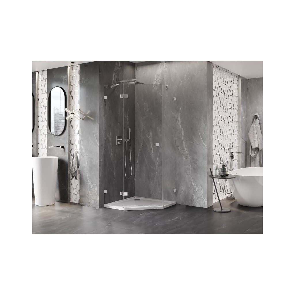 Mexen Lunar, pětiúhelníkový sprchový kout s levým sklonem 90 x 90 cm, 8mm čiré sklo, chromový profil, 831-090L-090P-01-00-L