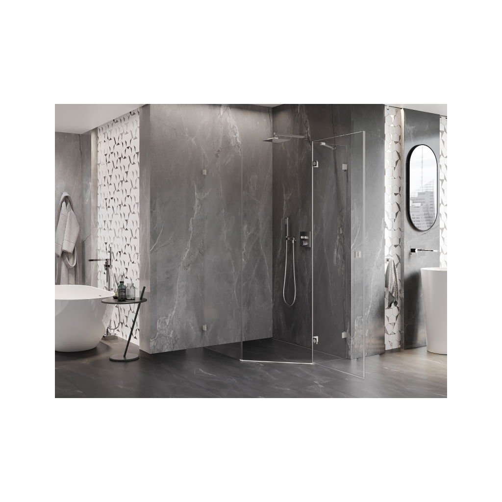 Mexen Lunar, pětiúhelníkový sprchový kout s pravým sklonem 80 x 100 cm, 8mm čiré sklo, ocelový profil, 831-080P-100L-97-00-P