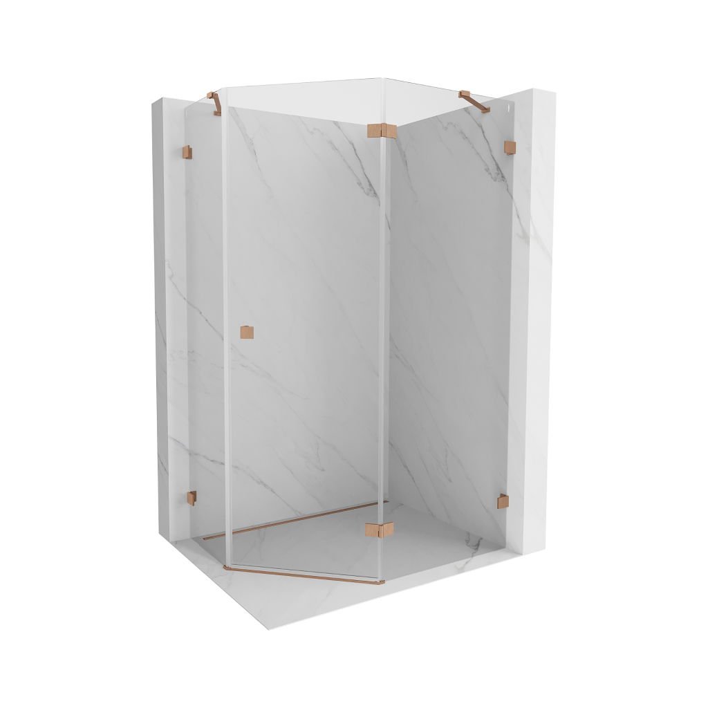 Mexen Lunar, pětiúhelníkový sprchový kout s pravým sklonem 90 x 80 cm, 8mm čiré sklo, profil měděná matná, 831-090P-080L-65-00-P