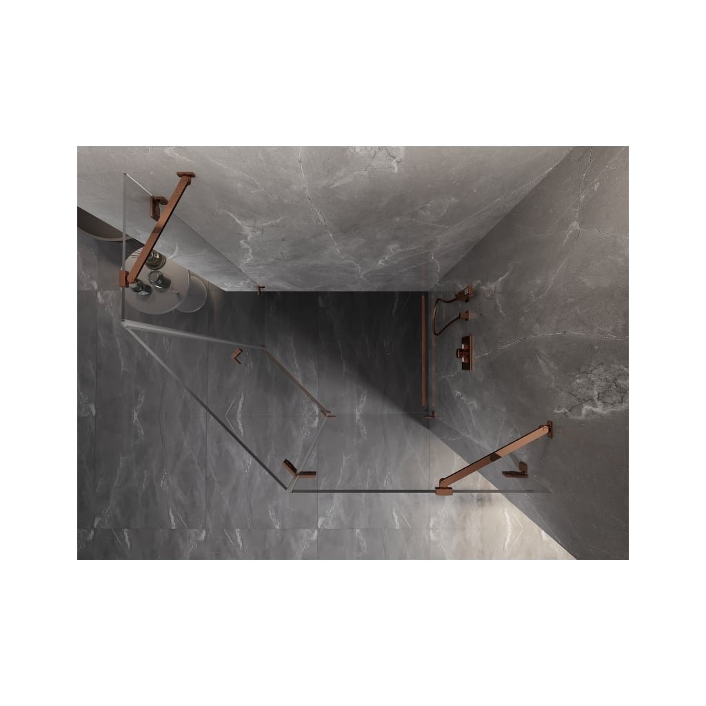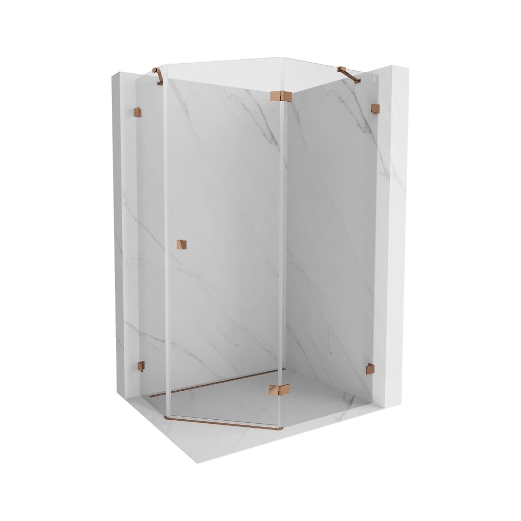 Mexen Lunar, pětiúhelníkový sprchový kout s pravým sklonem 90 x 80 cm, 8mm čiré sklo, profil růžové zlato, 831-090P-080L-60-00-P