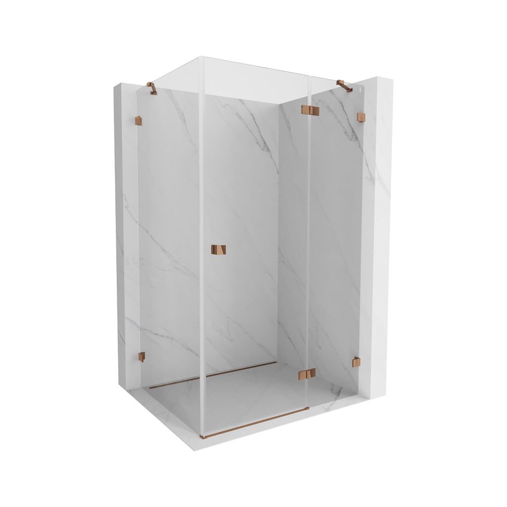 Mexen Lunar, pravostranný výklopný sprchový kout 90 x 70 cm, 8mm čiré sklo, profil růžové zlato, 834-090-070-60-00-P