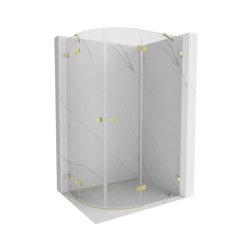 Mexen Lunar, pravý půlkruhový sprchový kout 90 x 70 cm, 8mm čiré sklo, zlatý matný profil, 833-090P-070L-55-00