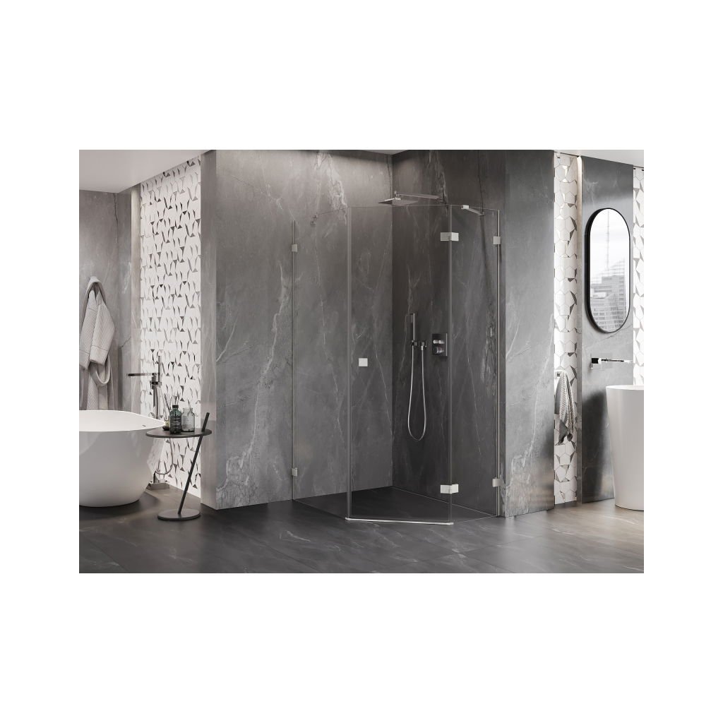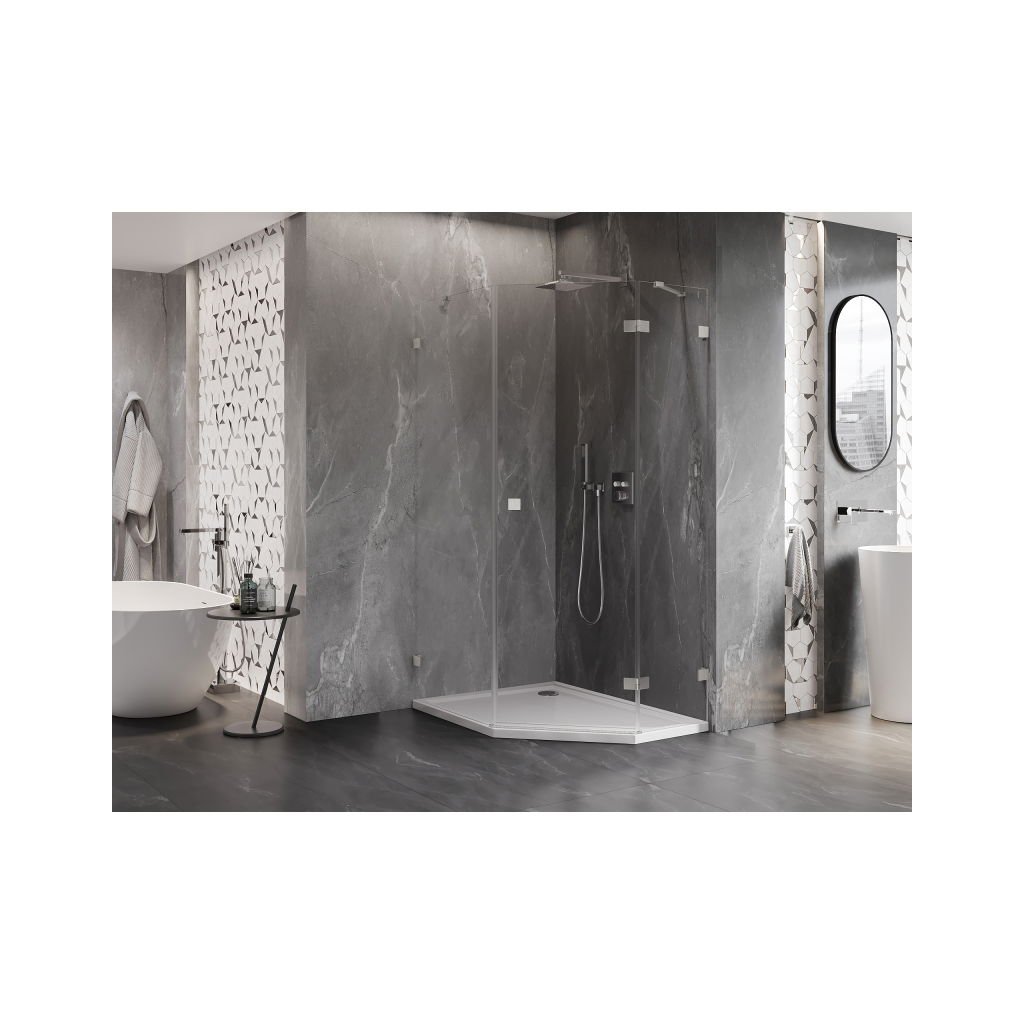 Mexen Lunar, pravý výklopný pětiúhelníkový sprchový kout 90 x 100 cm, 8mm čiré sklo, ocelový profil, 831-090P-100L-97-00-P