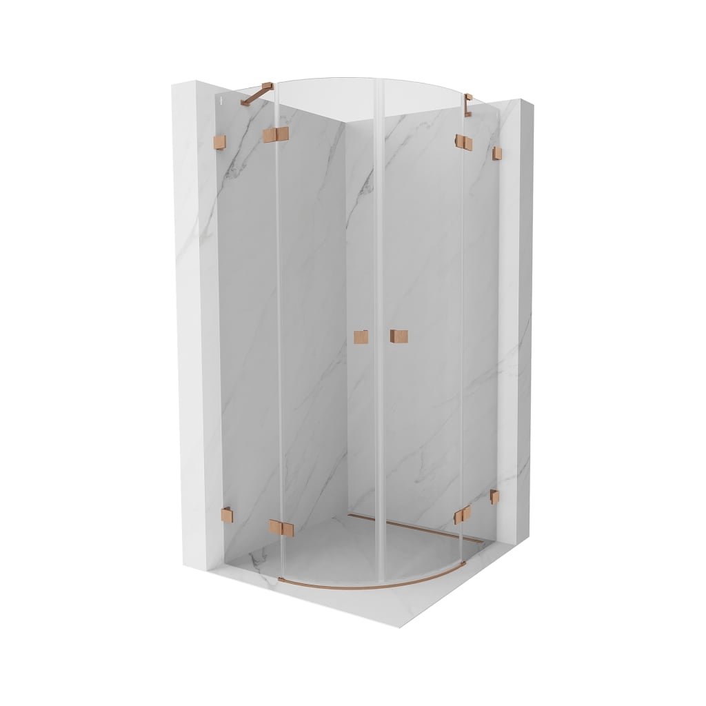 Mexen Lunar, půlkruhový výklopný sprchový kout 70 x 70 cm, 8mm čiré sklo, profil měděná matná, 833-070L-070P-65-00
