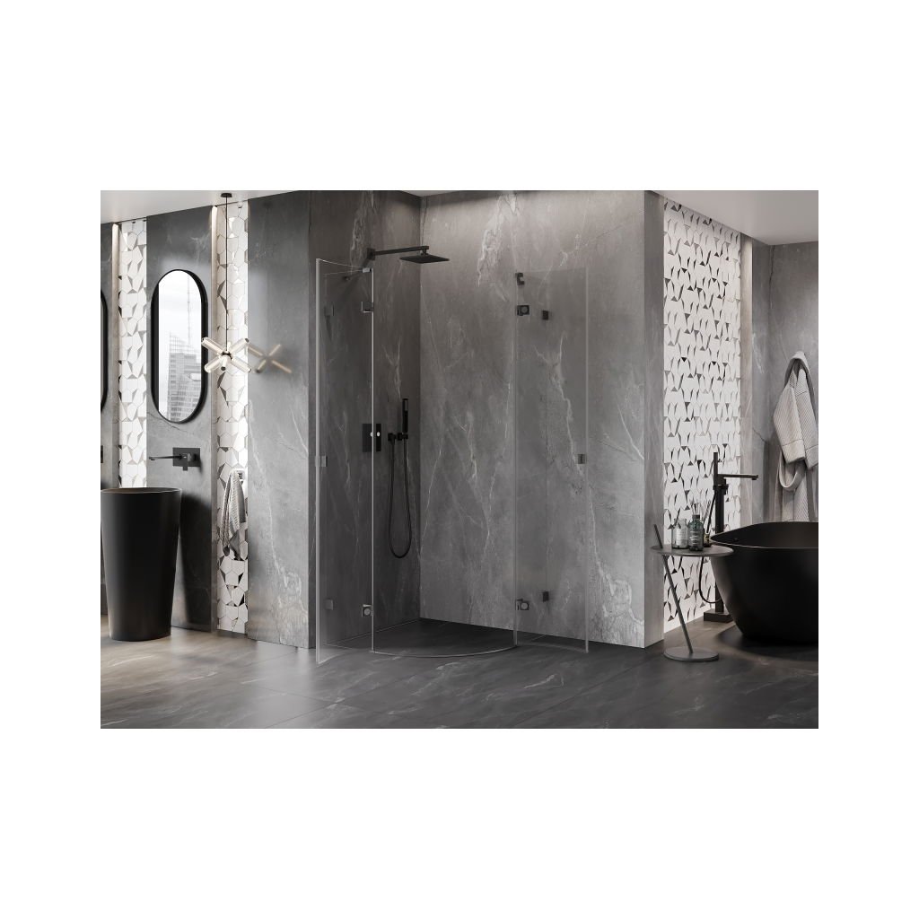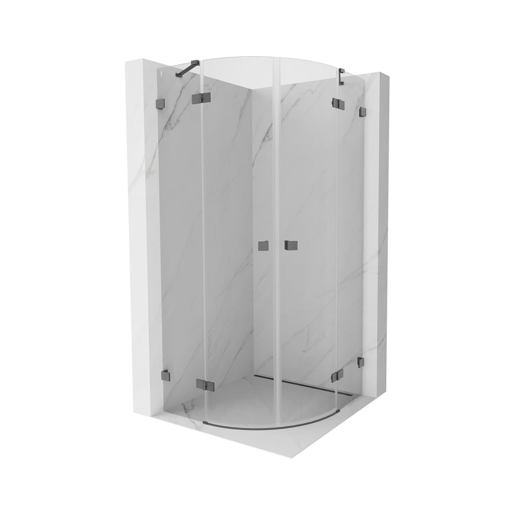 Mexen Lunar, půlkruhový výklopný sprchový kout 80 x 80 cm, 8mm čiré sklo, pistolově šedý kartáčovaný - 833-080L-080P-66-00