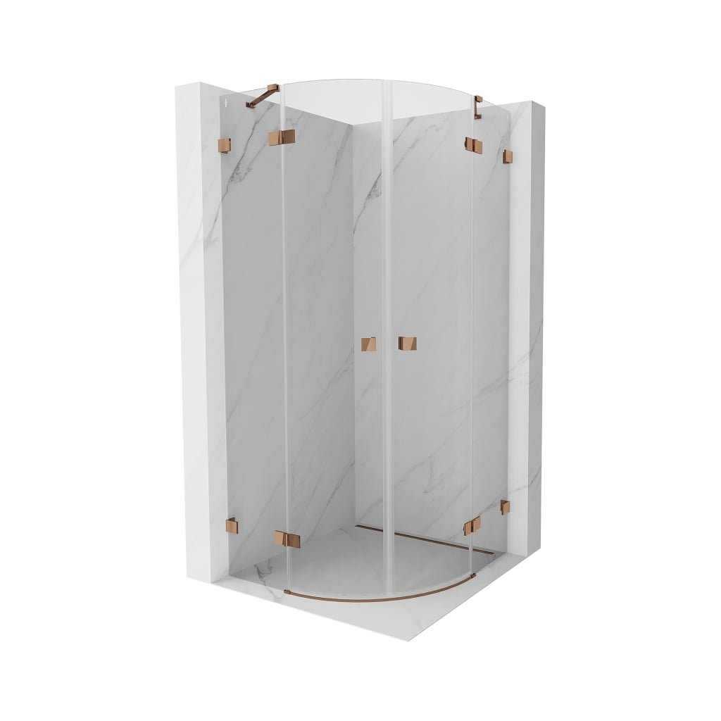 Mexen Lunar, půlkruhový výklopný sprchový kout 80 x 80 cm, 8mm čiré sklo, profil růžové zlato, 833-080L-080P-60-00