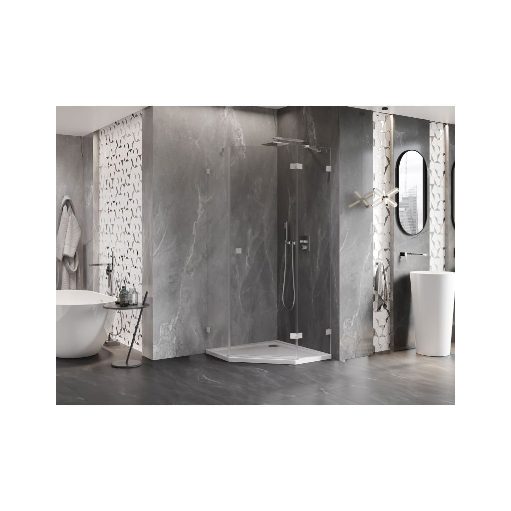 Mexen Lunar, výklopný pětiúhelníkový sprchový kout pravý 100 x 100 cm, 8mm čiré sklo, ocelový profil, 831-100P-100L-97-00-P
