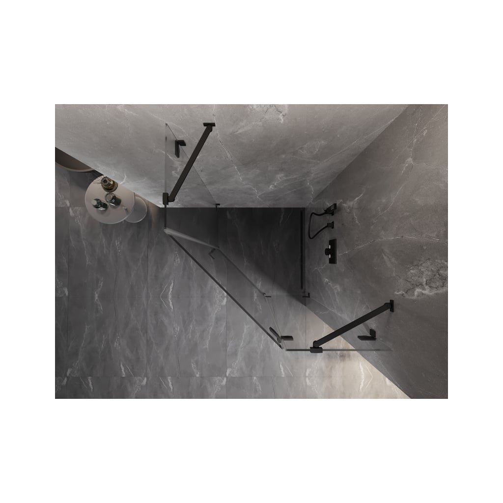 Mexen Lunar, výklopný pětiúhelníkový sprchový kout pravý 90 x 90 cm, 8mm čiré sklo, černý profil, 831-090P-090L-70-00-P