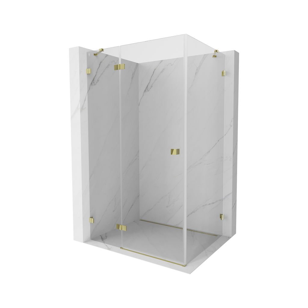 Mexen Lunar, výklopný sprchový kout levý 90 x 80 cm, 8mm čiré sklo, zlatý profil, 834-090-080-50-00-L