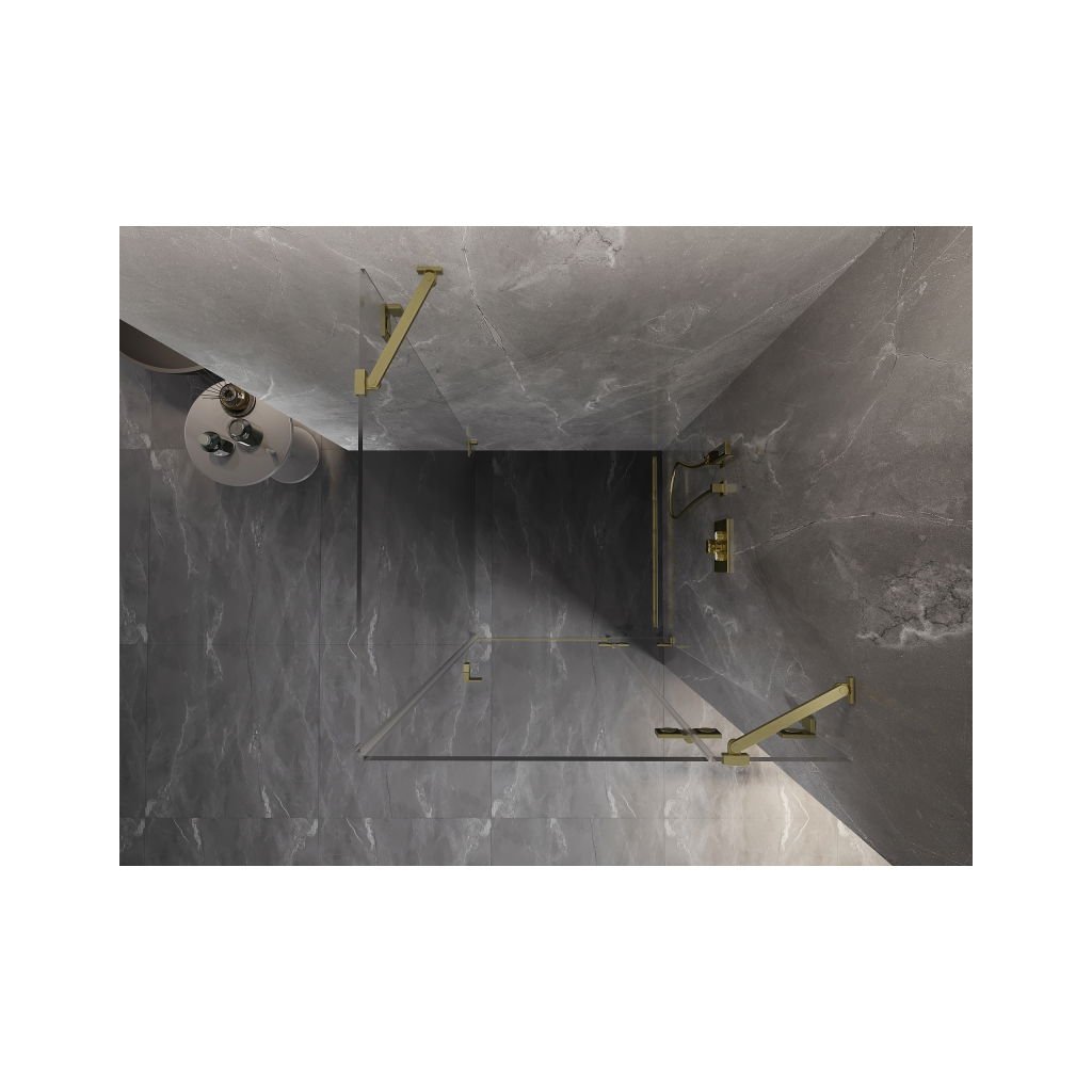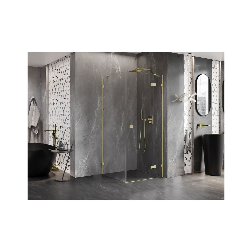 Mexen Lunar, výklopný sprchový kout pravý 70 x 70 cm, 8mm čiré sklo, zlatý kartáčovaný - 834-070-070-55-00-P