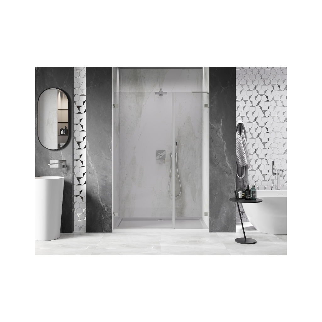 V konfiguraci více rozměrů nabízí stabilní konstrukci a výklopné (křídlové) dveře. Tvrzené sklo s povrchem EasyClean usnadňuje údržbu a profil v odstínu Broušený nikl zapadne do moderních koupelen.