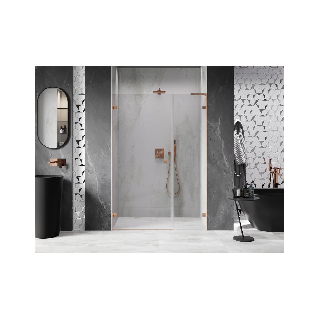 Mexen Lunar-B, L Otočné levé sprchové dveře 150 cm, 8mm čiré sklo, měděný matný profil, 832SL-150-050-65-00-L