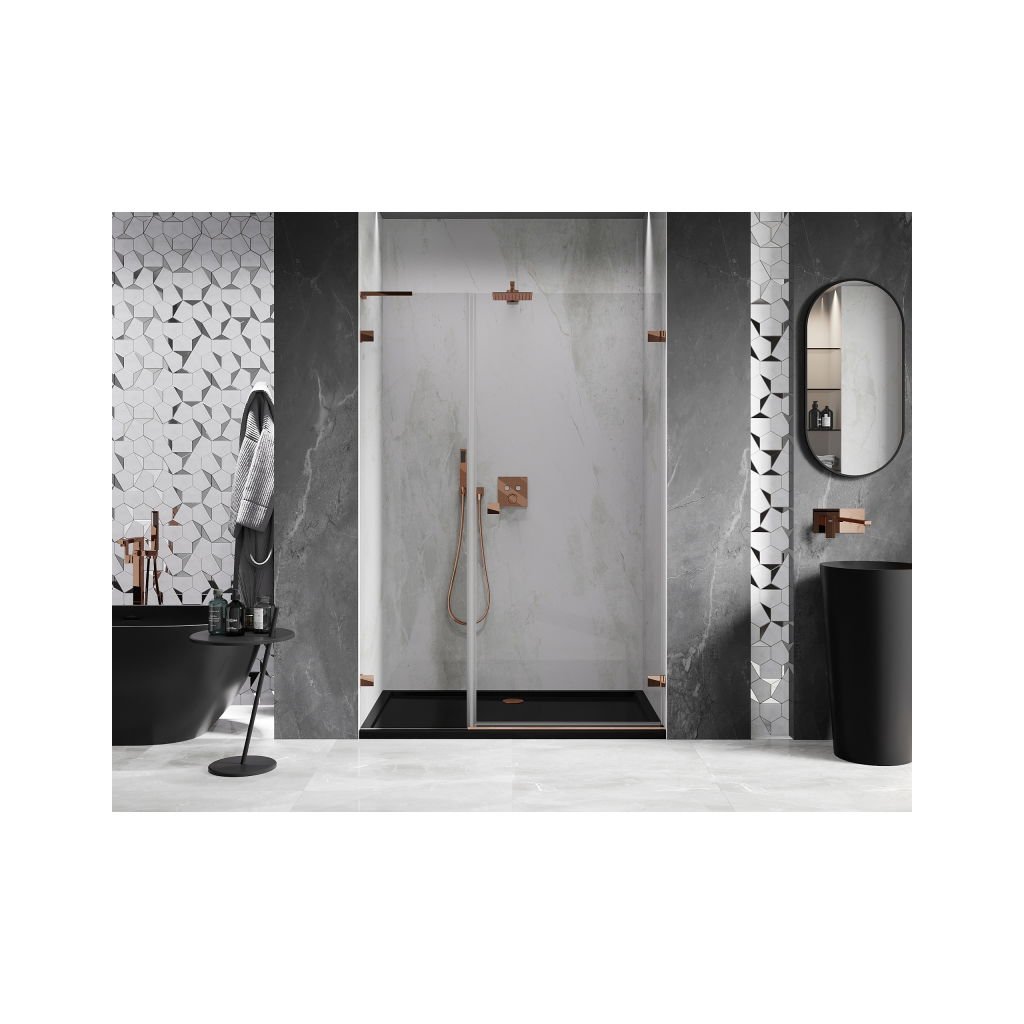 V konfiguraci více rozměrů nabízí stabilní konstrukci a výklopné (křídlové) dveře. Tvrzené sklo s povrchem EasyClean usnadňuje údržbu a profil v odstínu Růžové zlato zapadne do moderních koupelen.