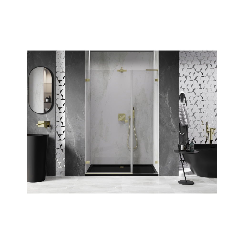 Mexen Lunar-B, L výklopné levé sprchové dveře 125 cm, 8mm čiré sklo, zlatý matný profil, 832SL-125-050-55-00-L