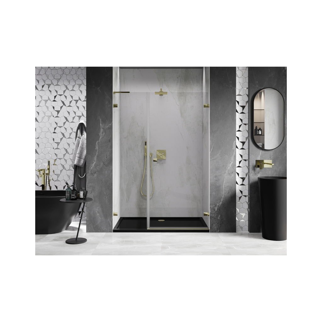 V konfiguraci více rozměrů nabízí stabilní konstrukci a výklopné (křídlové) dveře. Tvrzené sklo s povrchem EasyClean usnadňuje údržbu a profil v odstínu Zlatá lesklá zapadne do moderních koupelen.