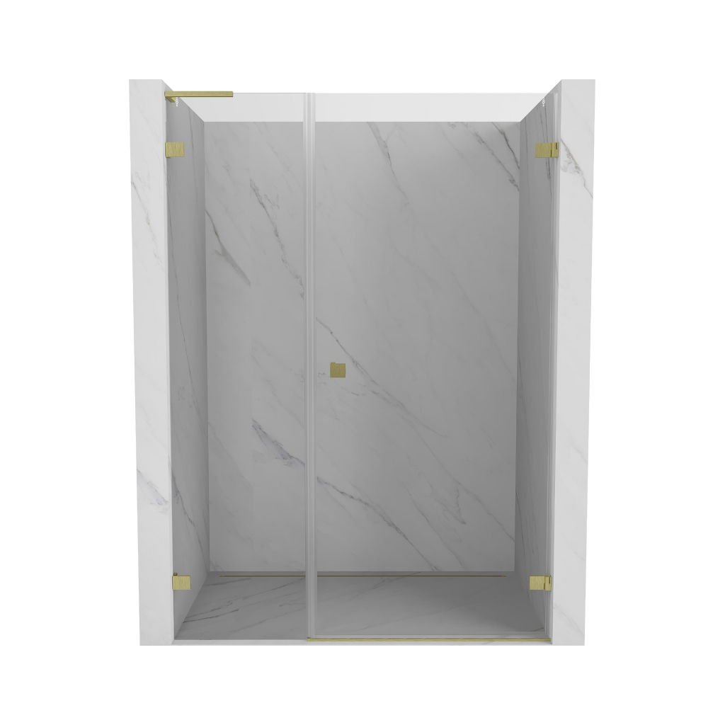 Mexen Lunar-B, L výklopné pravé sprchové dveře 135 cm, 8mm čiré sklo, zlatý matný profil, 832SL-135-050-55-00-P