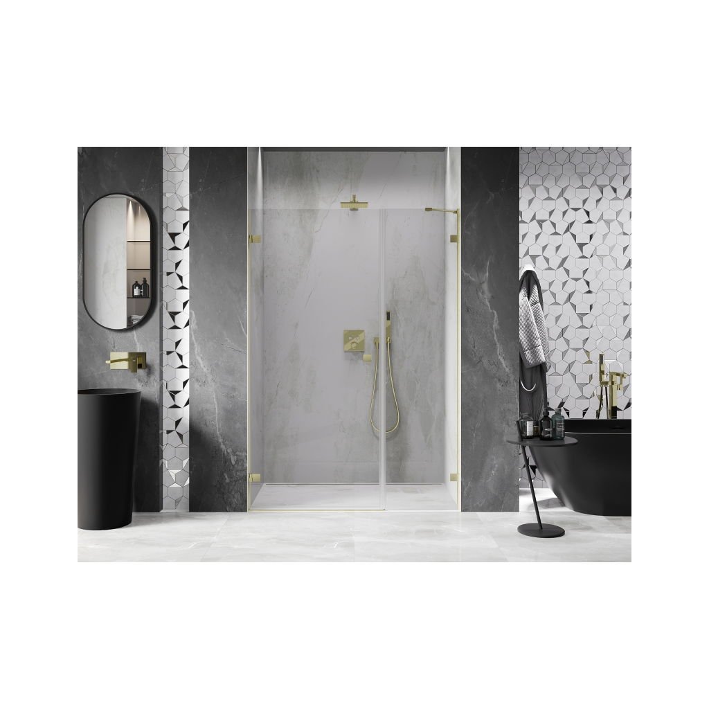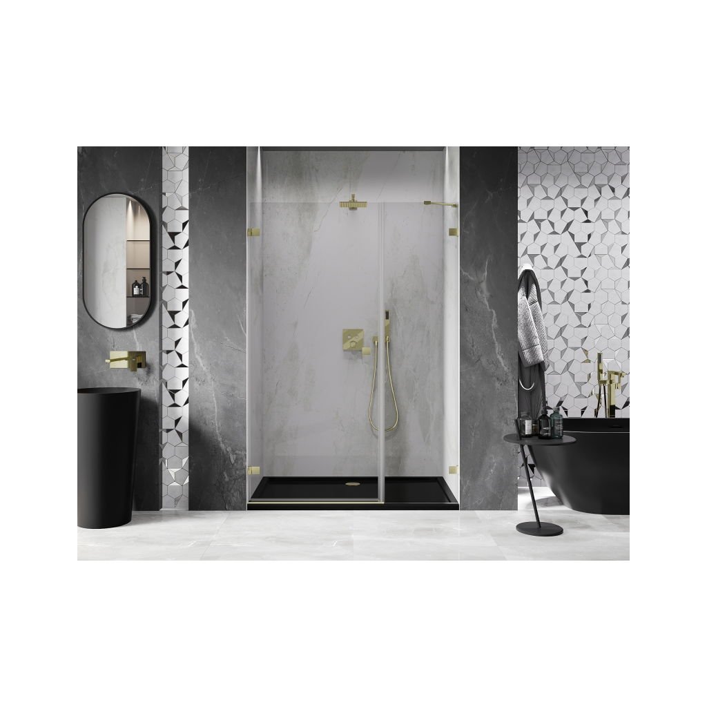 V konfiguraci více rozměrů nabízí stabilní konstrukci a výklopné (křídlové) dveře. Tvrzené sklo s povrchem EasyClean usnadňuje údržbu a profil v odstínu Broušená zlatá zapadne do moderních koupelen.