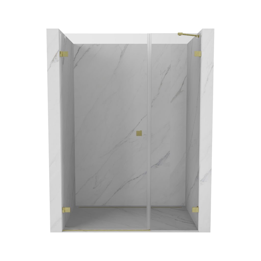 Mexen Lunar-B, levé otočné sprchové dveře 130 cm, 8mm čiré sklo, zlatý matný profil, 832S-130-050-55-00-L