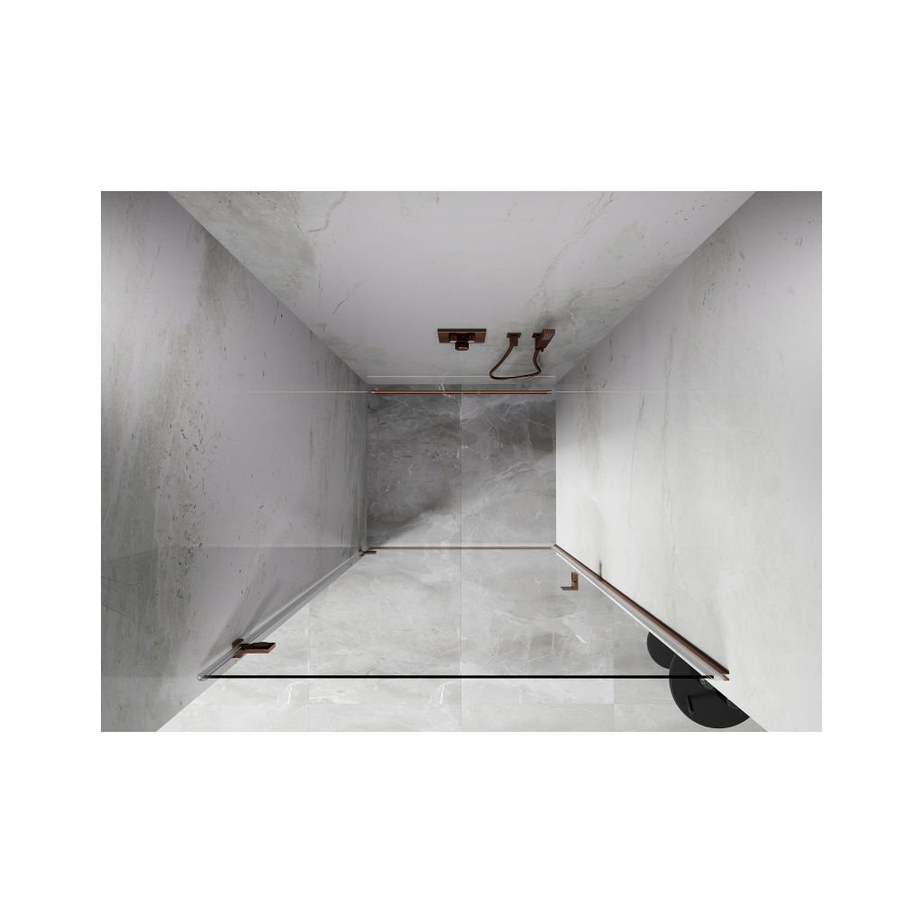 V konfiguraci více rozměrů nabízí stabilní konstrukci a výklopné (křídlové) dveře. Tvrzené sklo s povrchem EasyClean usnadňuje údržbu a profil v odstínu Broušená měď zapadne do moderních koupelen.