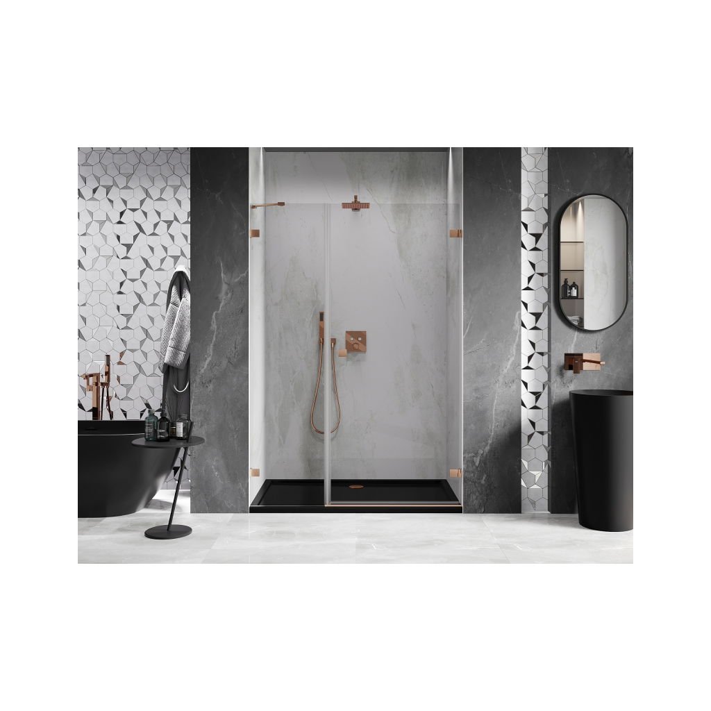 V konfiguraci více rozměrů nabízí stabilní konstrukci a výklopné (křídlové) dveře. Tvrzené sklo s povrchem EasyClean usnadňuje údržbu a profil v odstínu Broušená měď zapadne do moderních koupelen.