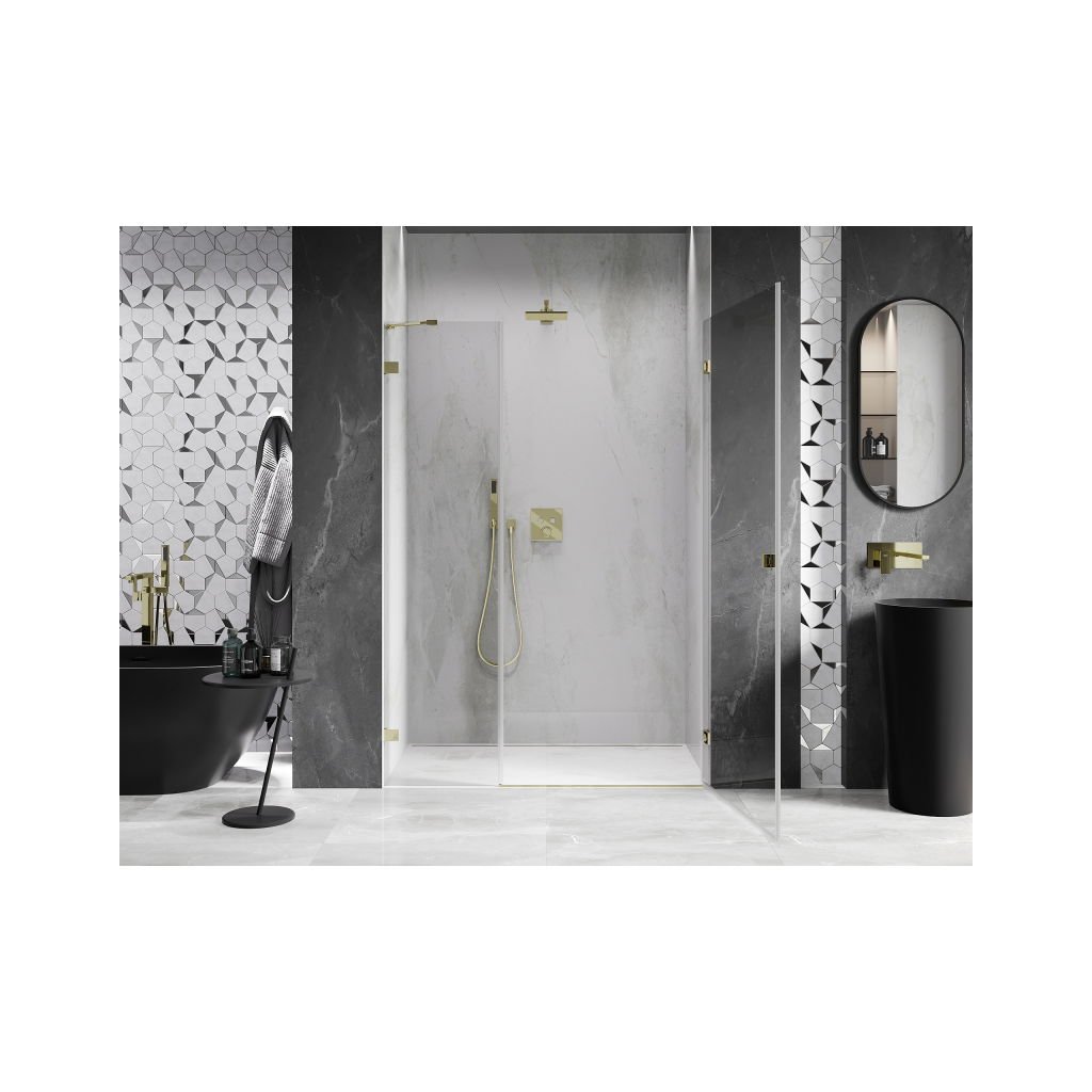 V konfiguraci více rozměrů nabízí stabilní konstrukci a výklopné (křídlové) dveře. Tvrzené sklo s povrchem EasyClean usnadňuje údržbu a profil v odstínu Zlatá lesklá zapadne do moderních koupelen.