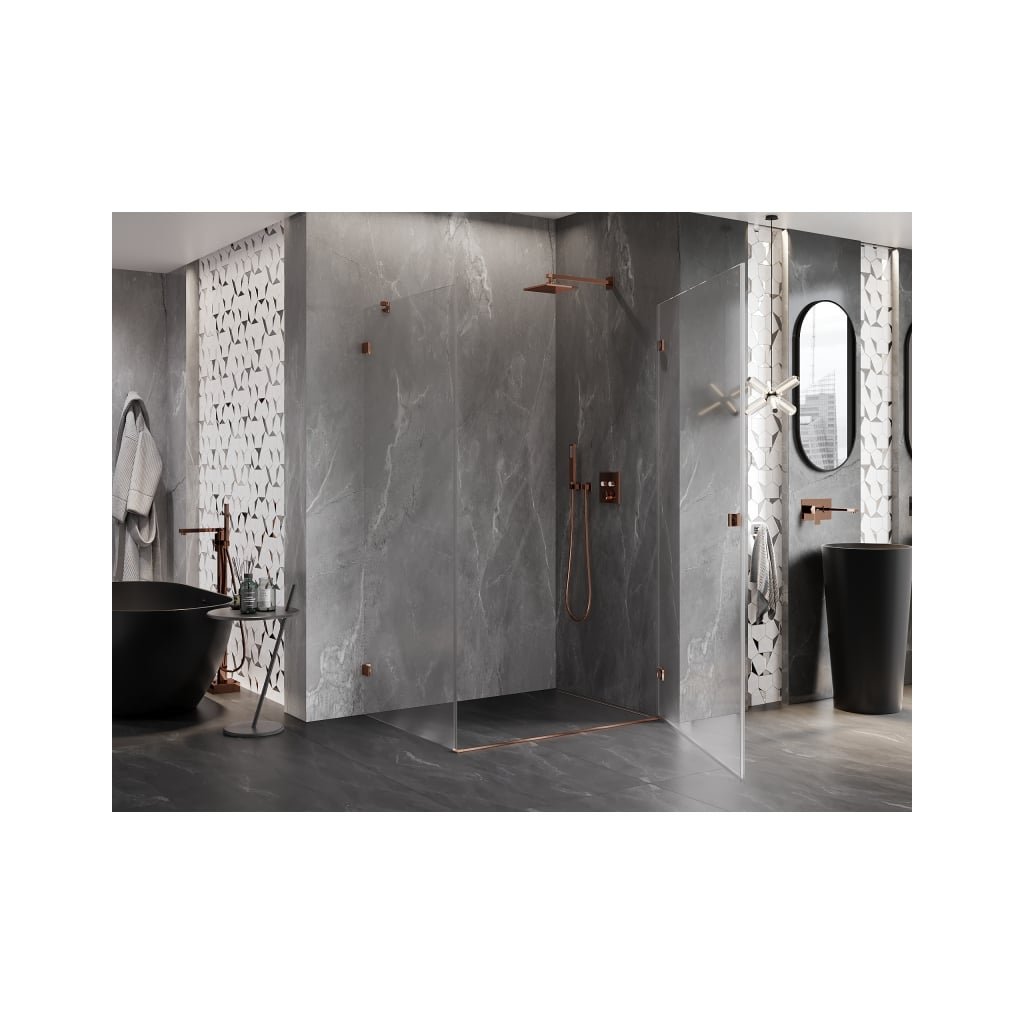 Mexen Lunar-B, pravostranný výklopný sprchový kout 95 x 80 cm, 8mm čiré sklo, profil růžové zlato, 832-095-080-60-00-P
