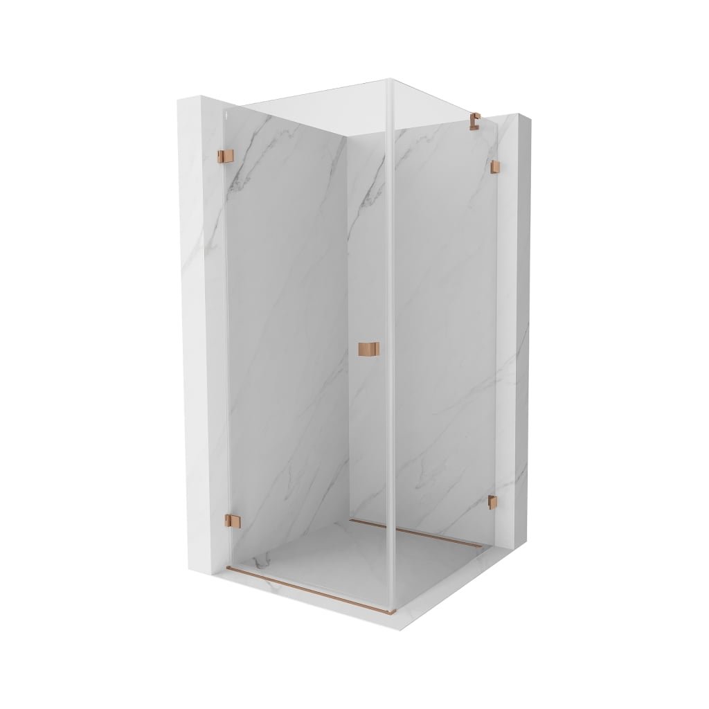 Mexen Lunar-B, výklopný sprchový kout levý 80 x 80 cm, 8mm čiré sklo, profil měděná matná, 832-080-080-65-00-L