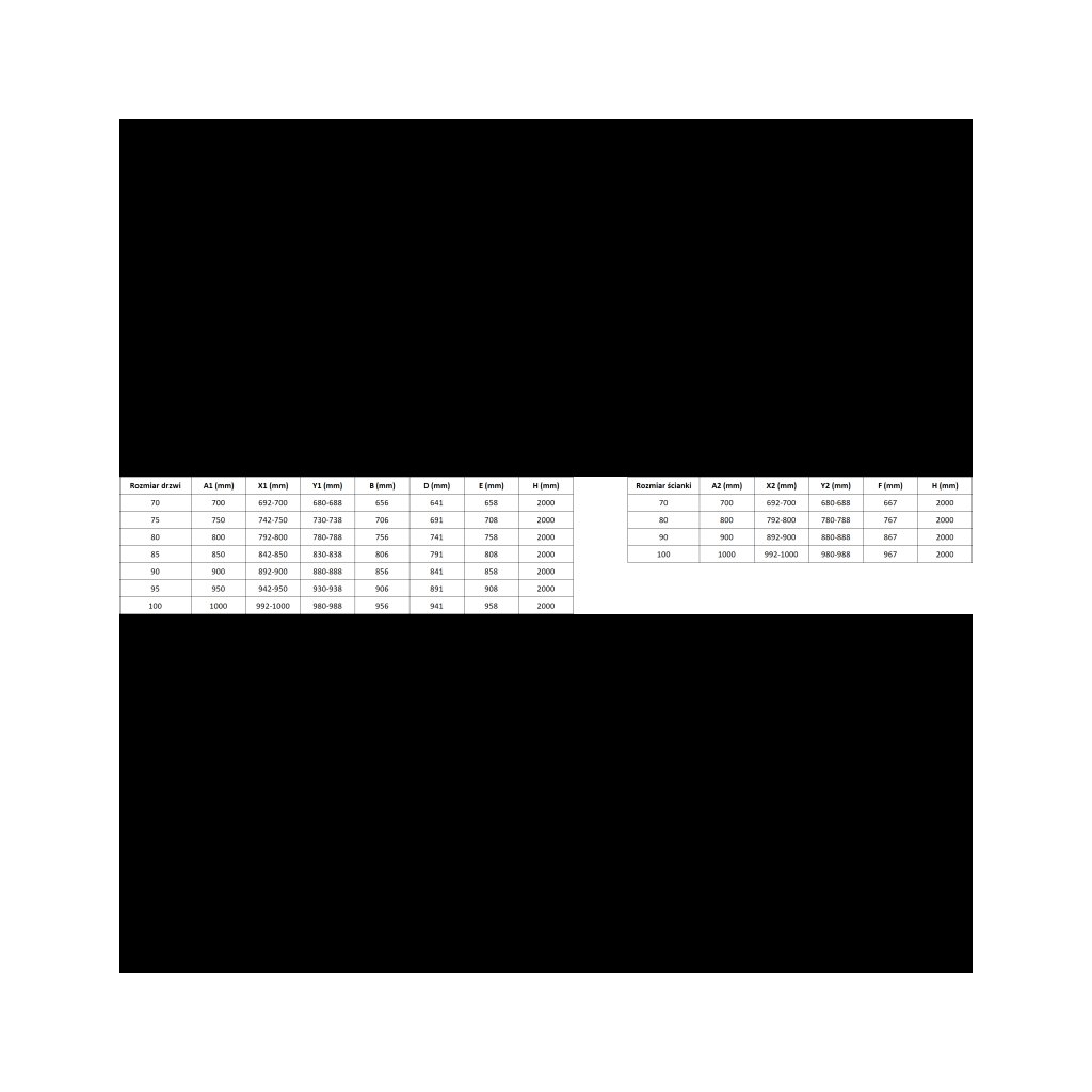 Rozměry: 85x70 cm (levé dveře 85 cm, stěna 70 cm)