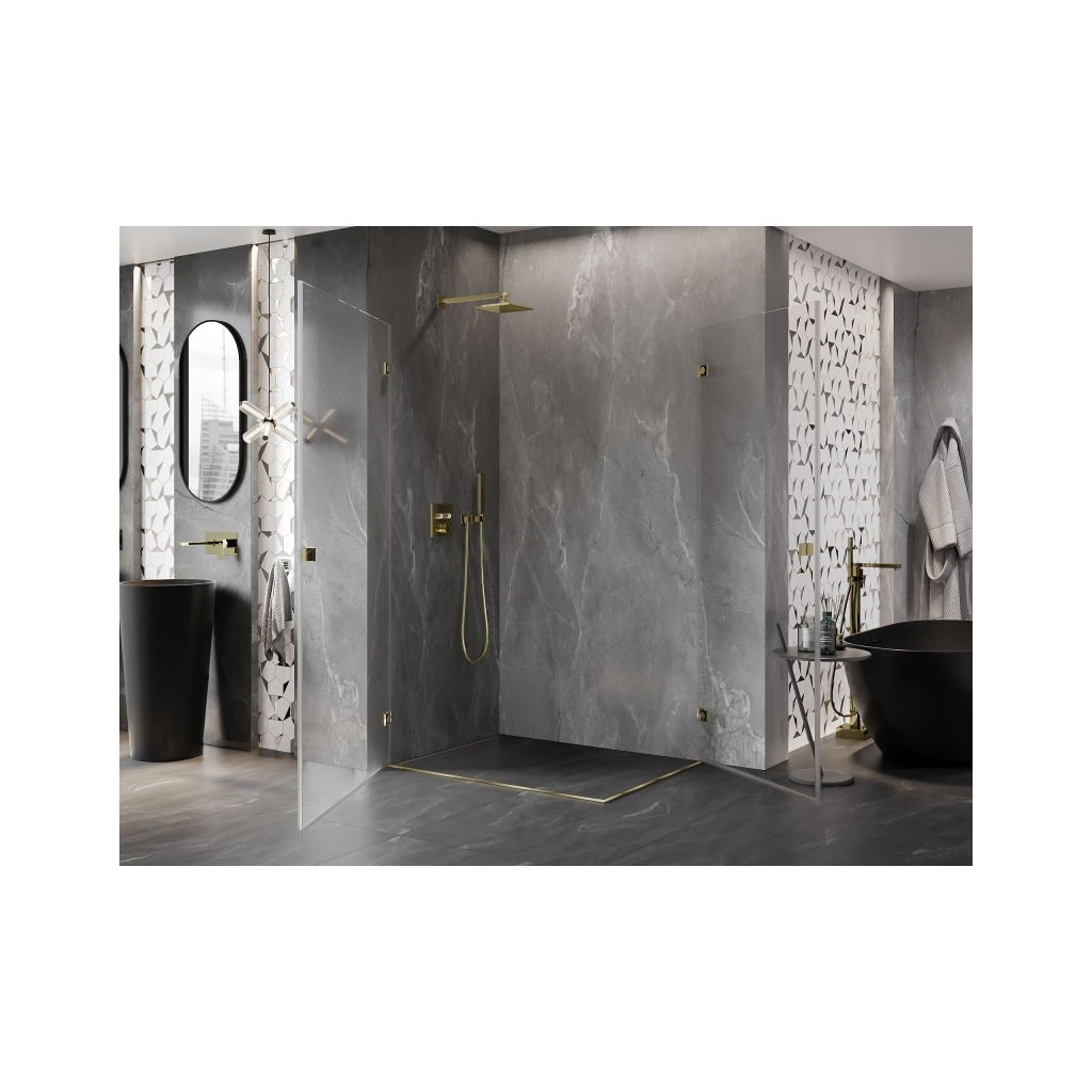 Mexen Lunar-B Duo, výklopný sprchový kout 100 x 90 cm, 8mm čiré sklo, zlatý profil, 832-100L-090P-50-00