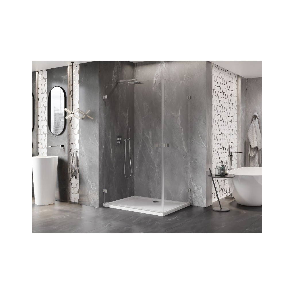 Mexen Lunar-B Duo výklopný sprchový kout 85 x 75 cm, čiré sklo, broušená ocel, 832-085L-075P-97-00