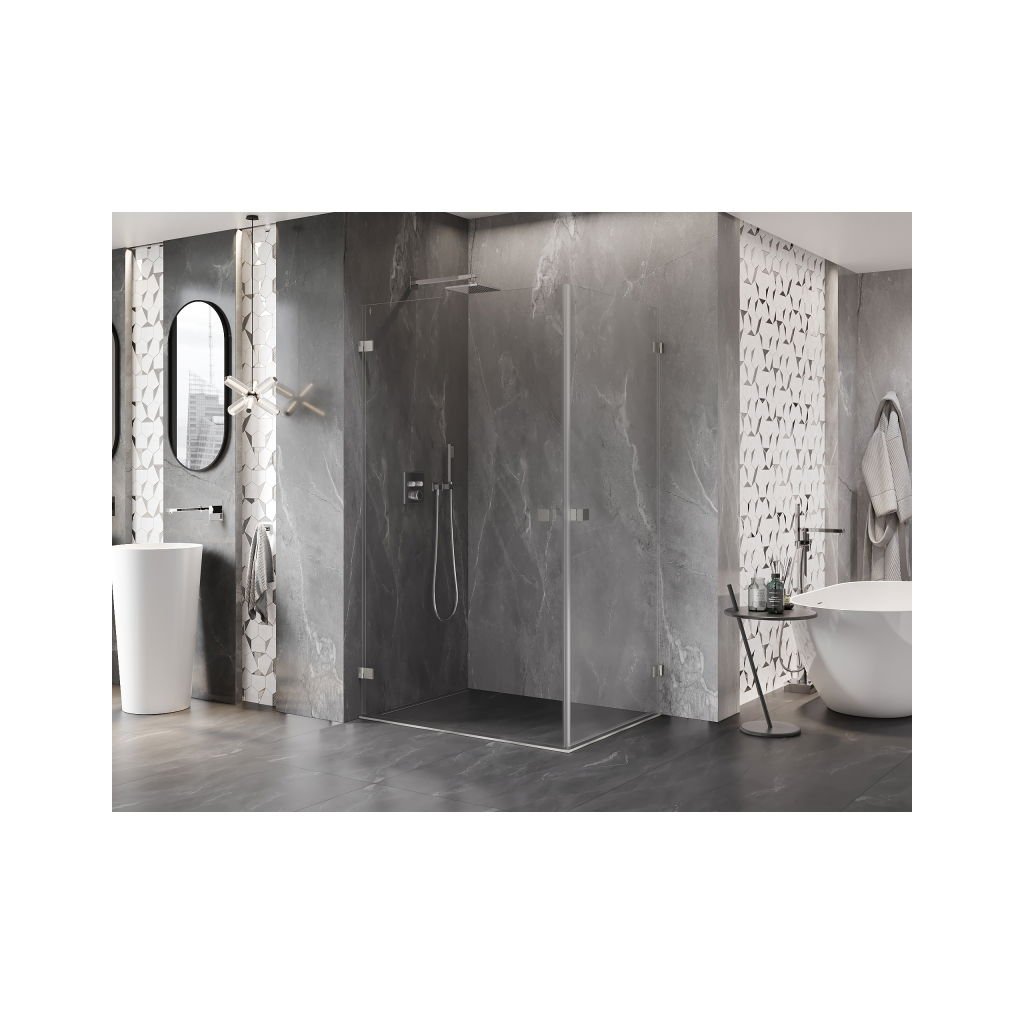 Mexen Lunar-B Duo výklopný sprchový kout 95 x 75 cm, čiré sklo, broušená ocel, 832-095L-075P-97-00