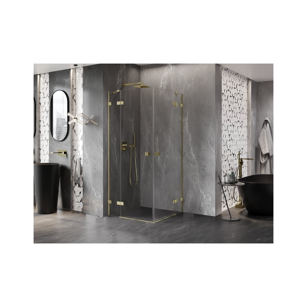 Mexen Lunar Duo, výklopný sprchový kout 100 x 100 cm, 8mm čiré sklo, zlatý matný profil, 834-100L-100P-55-00