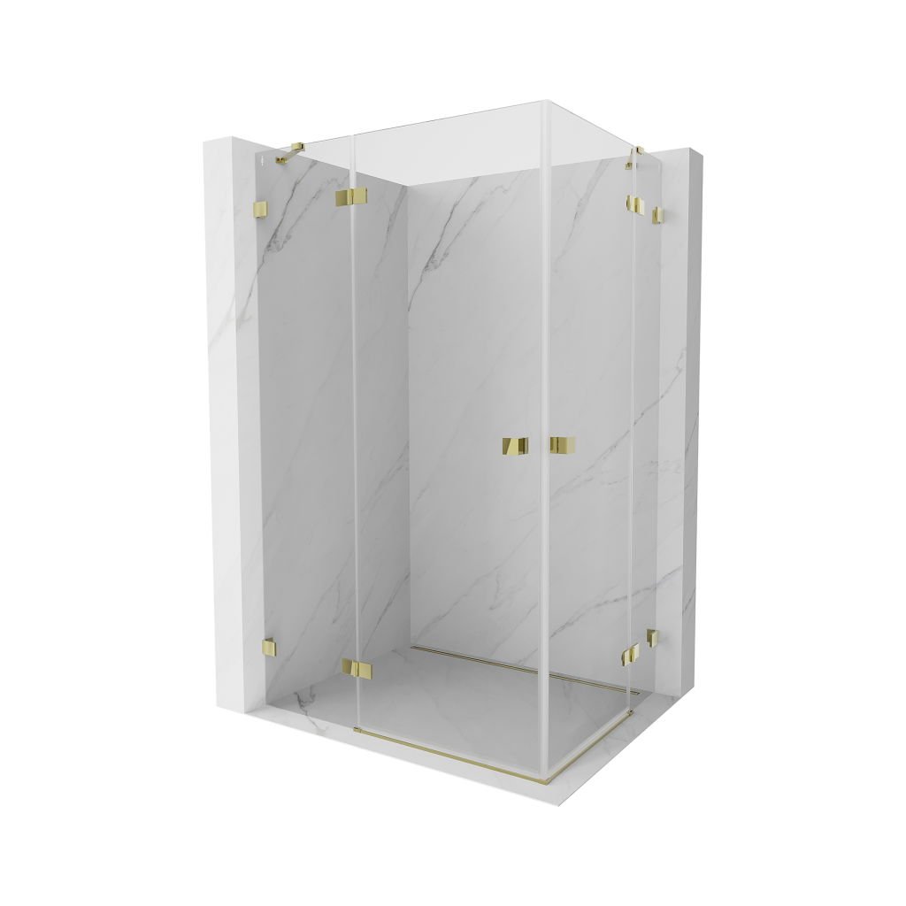 Mexen Lunar Duo, výklopný sprchový kout 90 x 75 cm, 8mm čiré sklo, zlatý profil, 834-090L-075P-50-00
