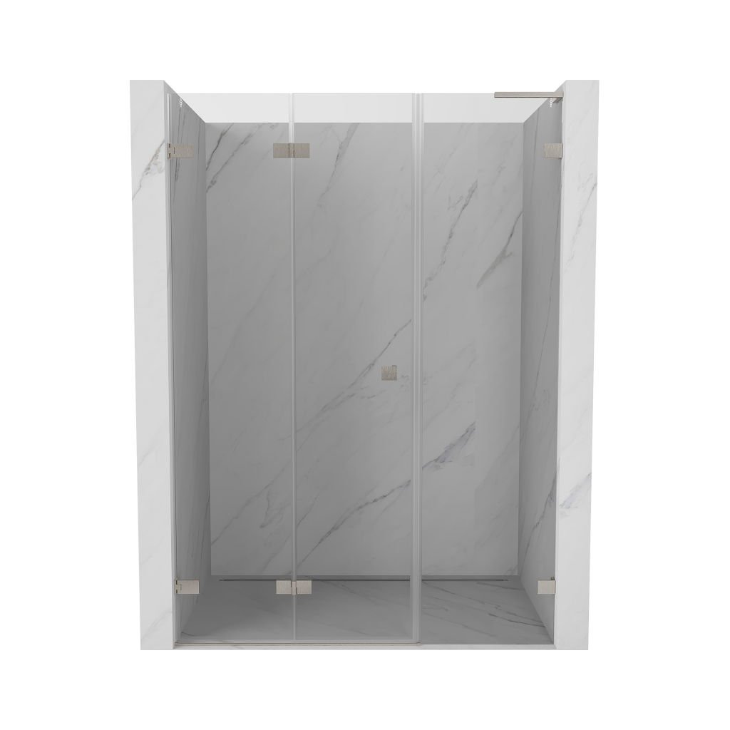 V konfiguraci více rozměrů nabízí stabilní konstrukci a skládací dveře. Tvrzené sklo s povrchem EasyClean usnadňuje údržbu a profil v odstínu Broušený nikl zapadne do moderních koupelen.