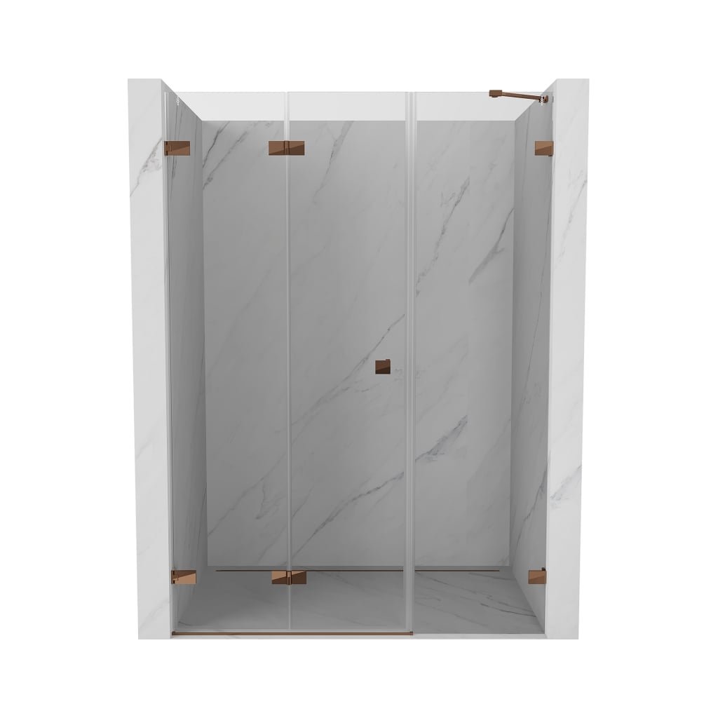 Mexen Lunar-F, skládací levé sprchové dveře 130 cm, 8mm čiré sklo, růžové zlato profil, 836S-130-050-60-00-L