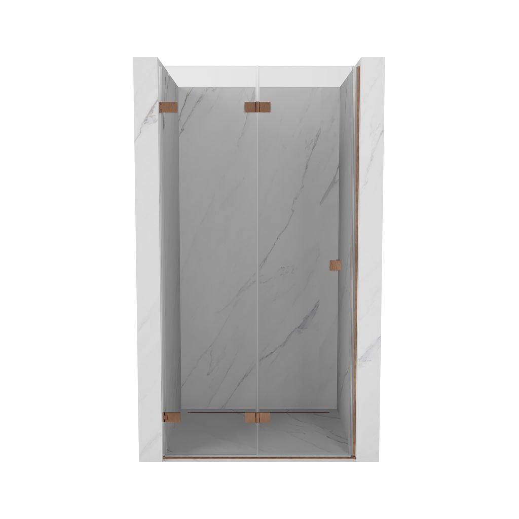 Mexen Lunar-F, skládací levé sprchové dveře 60 cm, 8mm čiré sklo, měděný matný profil, 836-060-000-65-00-L