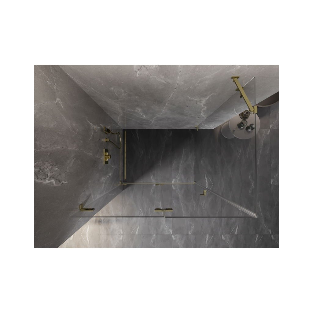 Mexen Lunar-F, skládací sprchový kout levý 75 x 70 cm, 8mm čiré sklo, zlatý matný profil, 836-075-070-55-00-L