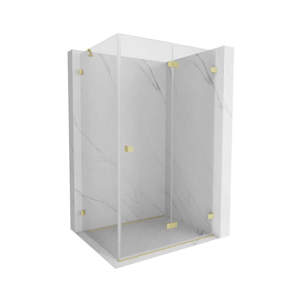 Mexen Lunar-F, sklápěcí sprchový kout pravý 90 x 80 cm, 8mm čiré sklo, zlatý matný profil, 836-090-080-55-00-P
