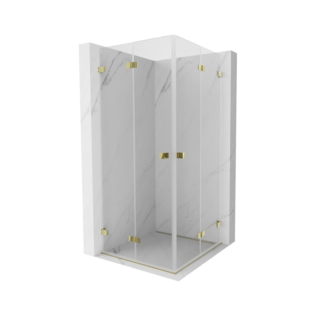 Mexen Lunar-F Duo, skládací sprchový kout 85 x 85 cm, 8mm čiré sklo, zlatý profil, 836-085L-085P-50-00