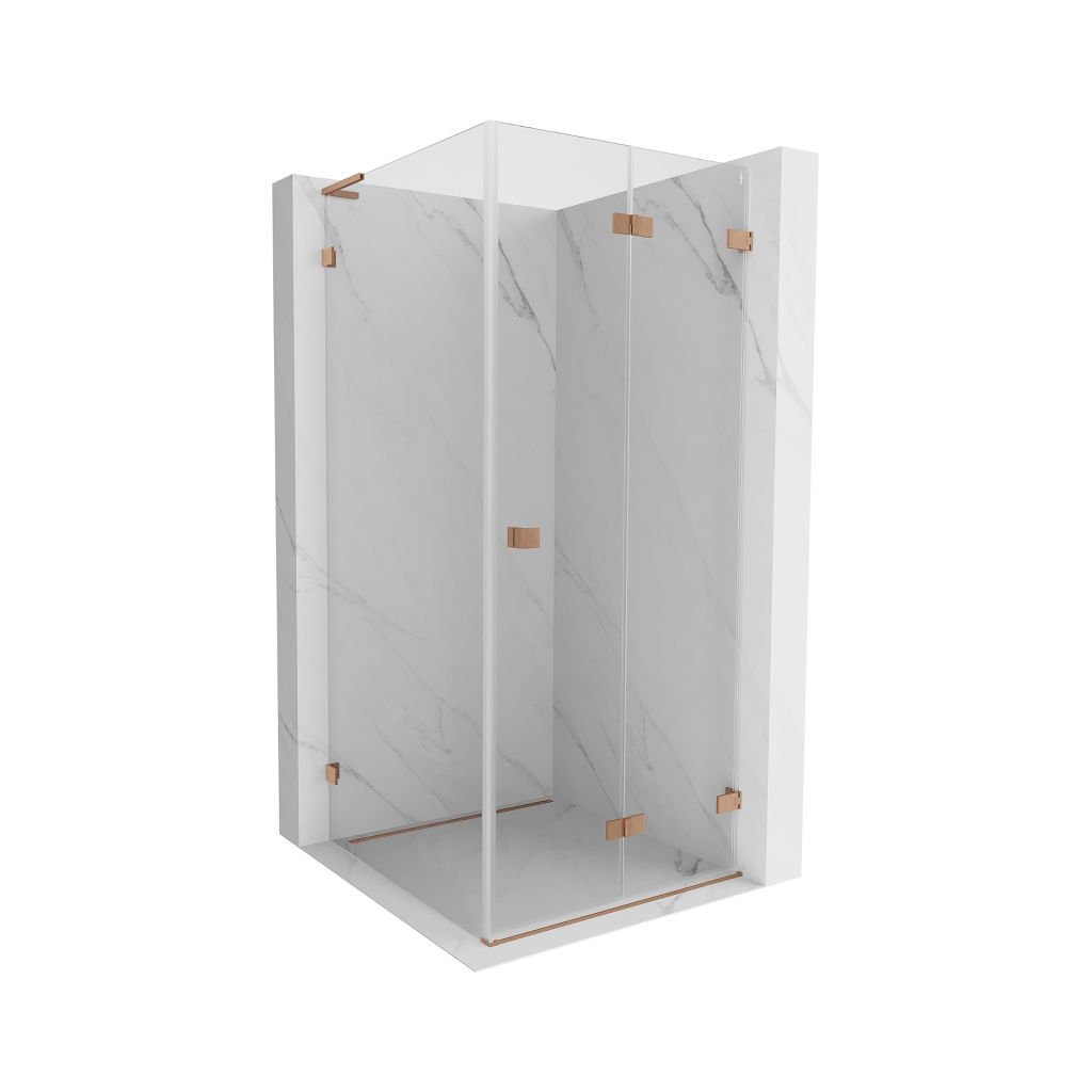 Mexen Lunar-F L, sklápěcí sprchový kout pravý 80 x 80 cm, 8mm čiré sklo, profil měděná matná, 836L-080-080-65-00-P