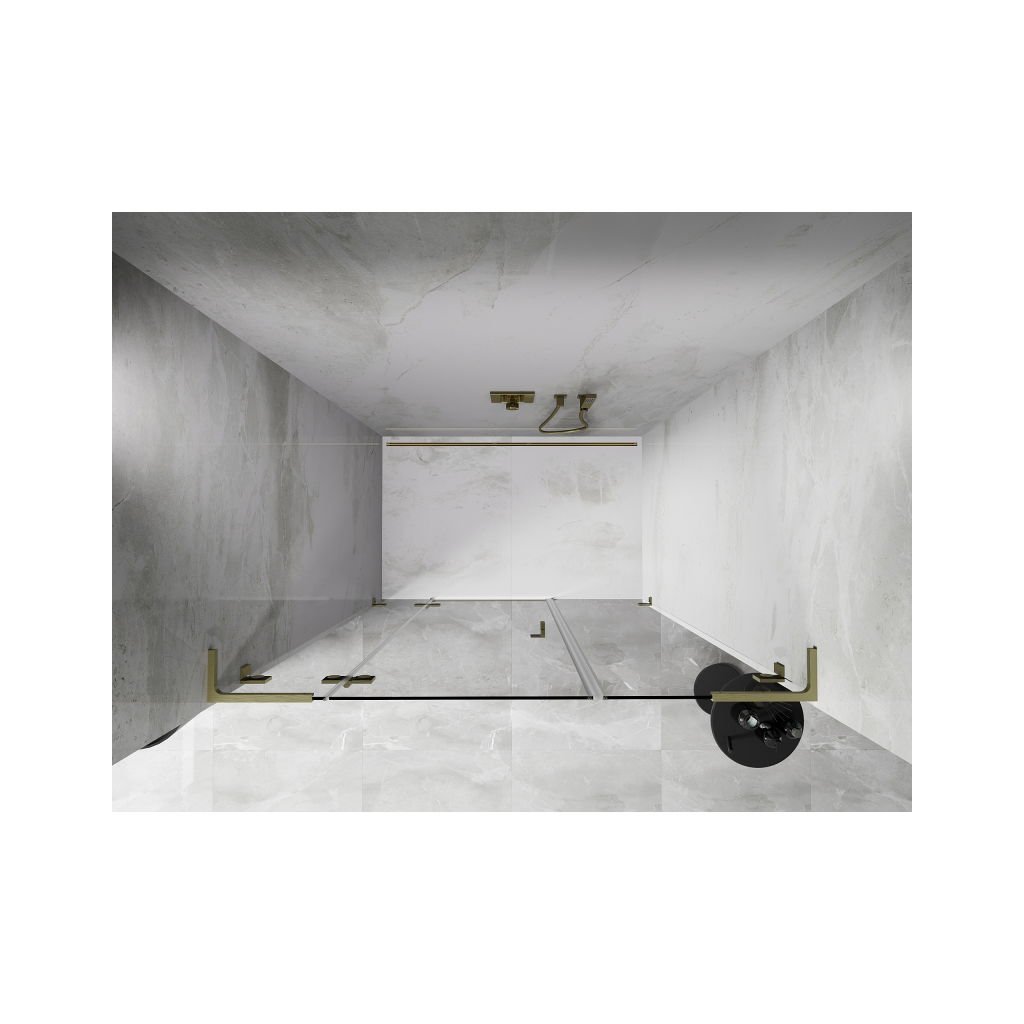 V konfiguraci více rozměrů nabízí stabilní konstrukci a výklopné (křídlové) dveře. Tvrzené sklo s povrchem EasyClean usnadňuje údržbu a profil v odstínu Broušená zlatá zapadne do moderních koupelen.