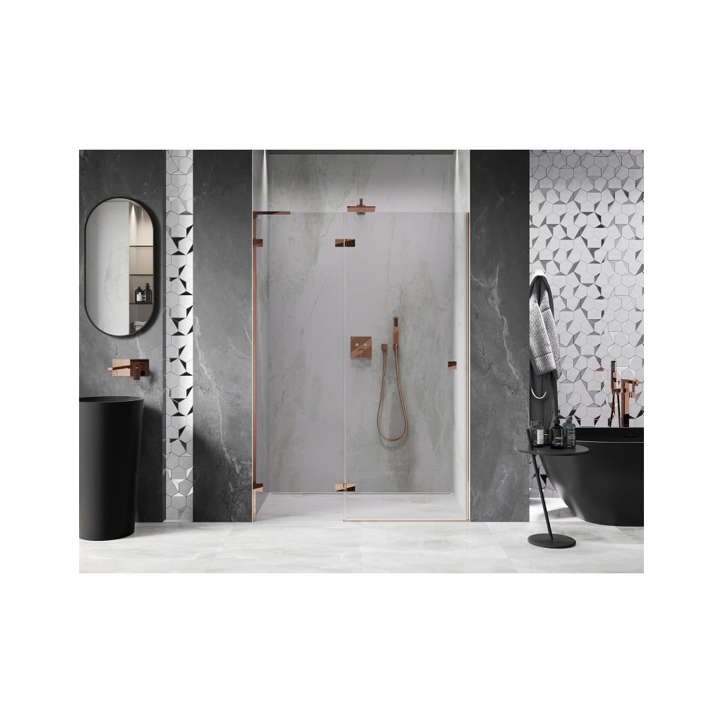 V konfiguraci více rozměrů nabízí stabilní konstrukci a výklopné (křídlové) dveře. Tvrzené sklo s povrchem EasyClean usnadňuje údržbu a profil v odstínu Růžové zlato zapadne do moderních koupelen.