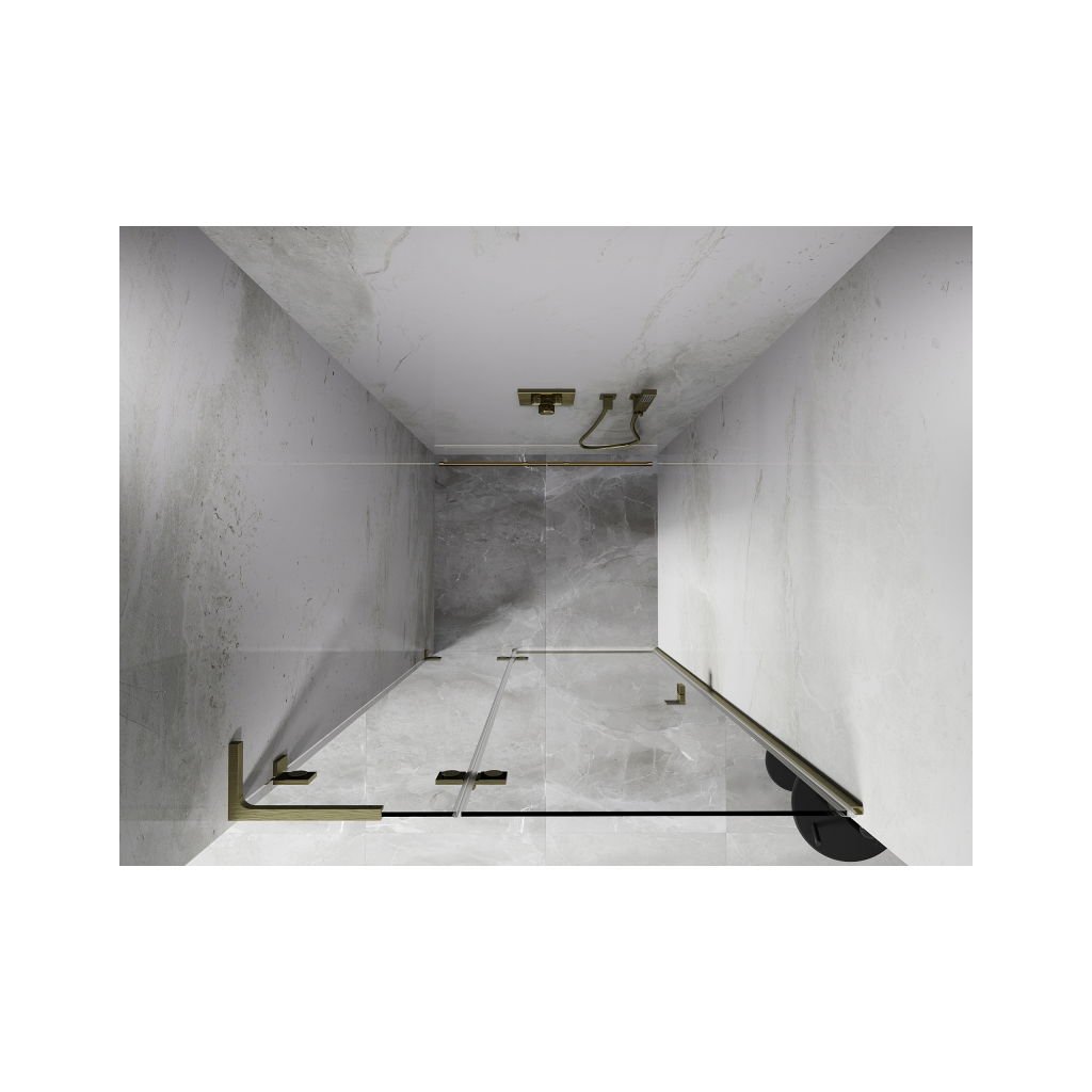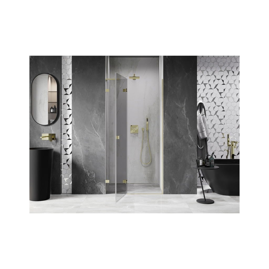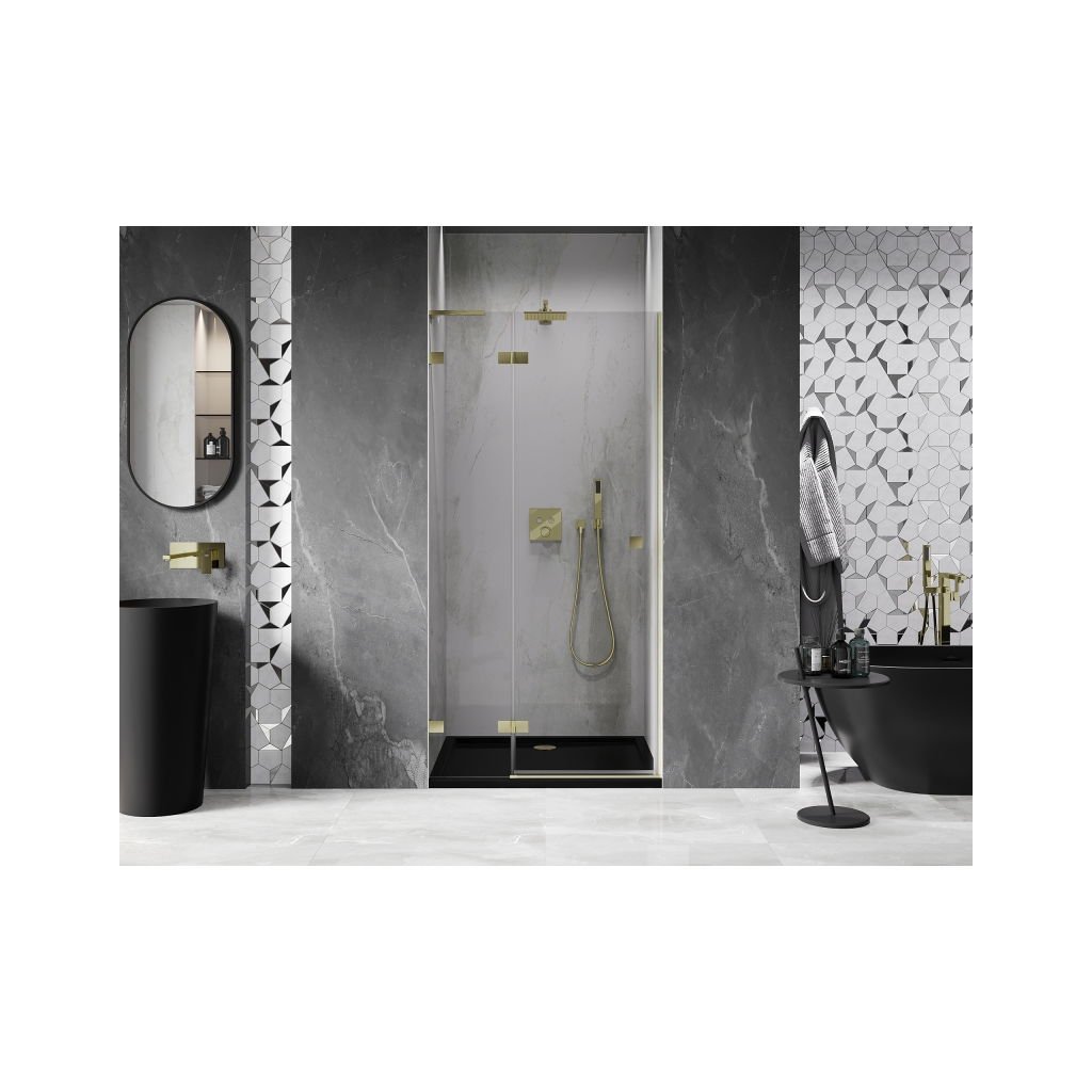V konfiguraci více rozměrů nabízí stabilní konstrukci a výklopné (křídlové) dveře. Tvrzené sklo s povrchem EasyClean usnadňuje údržbu a profil v odstínu Broušená zlatá zapadne do moderních koupelen.