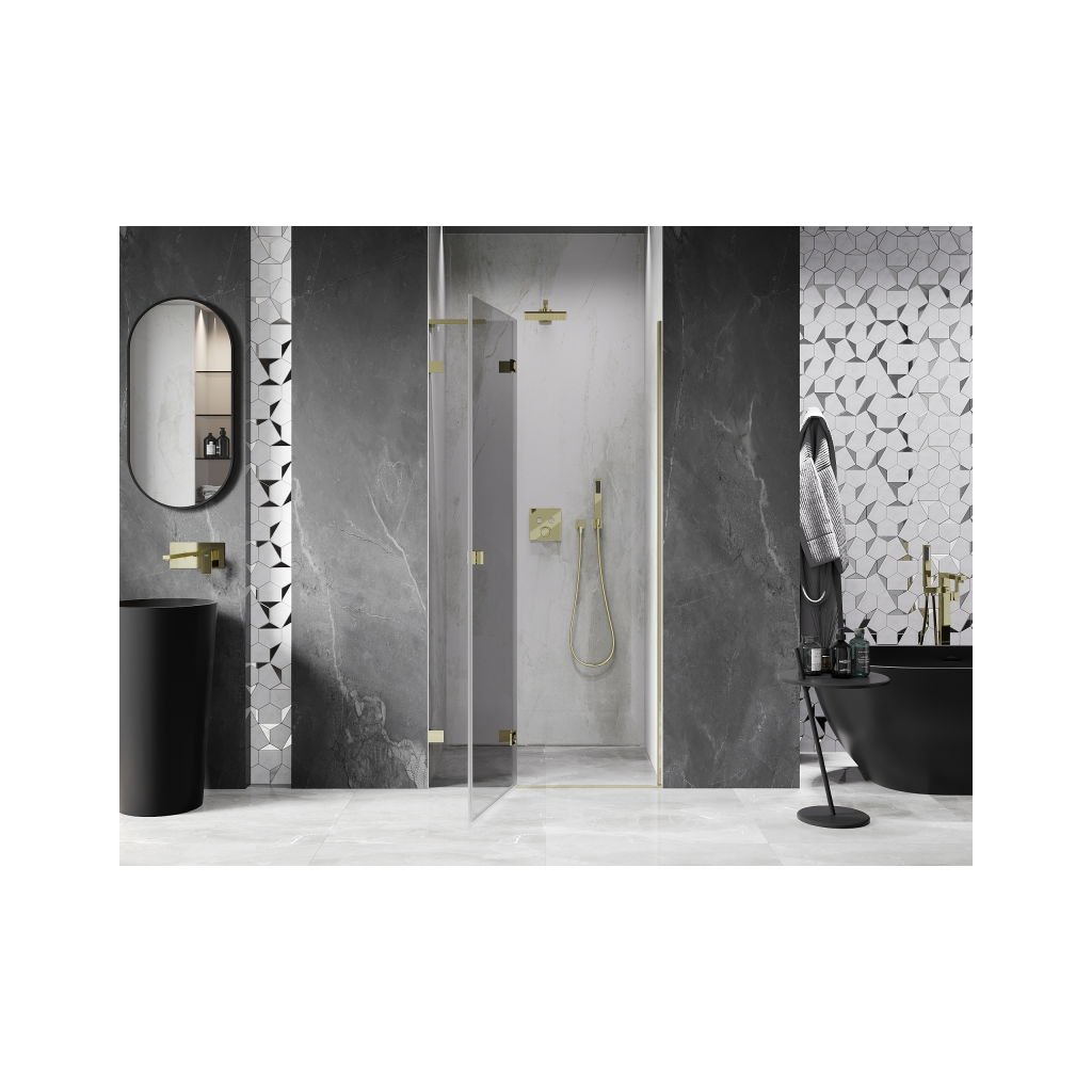 V konfiguraci více rozměrů nabízí stabilní konstrukci a výklopné (křídlové) dveře. Tvrzené sklo s povrchem EasyClean usnadňuje údržbu a profil v odstínu Zlatá lesklá zapadne do moderních koupelen.