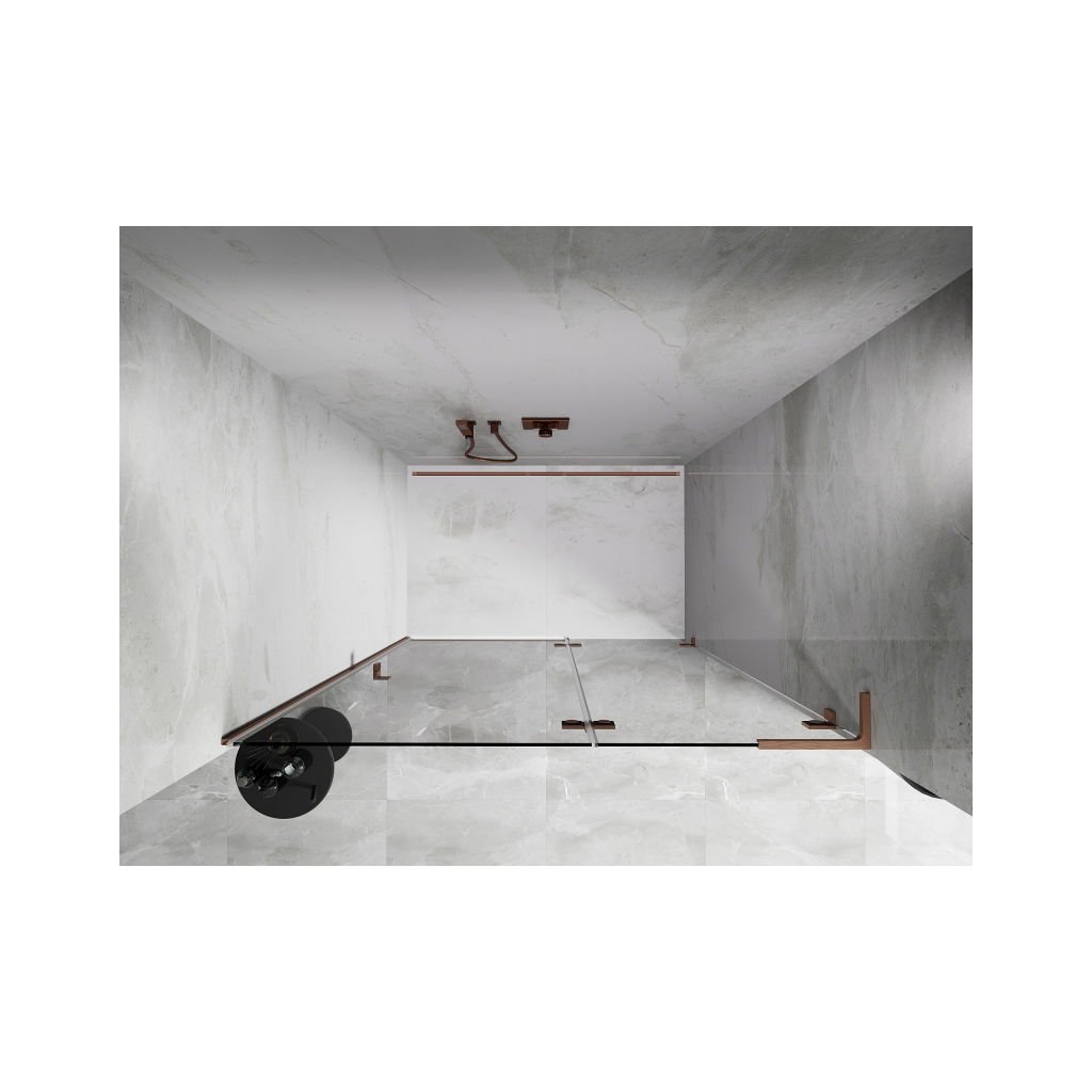 V konfiguraci více rozměrů nabízí stabilní konstrukci a výklopné (křídlové) dveře. Tvrzené sklo s povrchem EasyClean usnadňuje údržbu a profil v odstínu Broušená měď zapadne do moderních koupelen.
