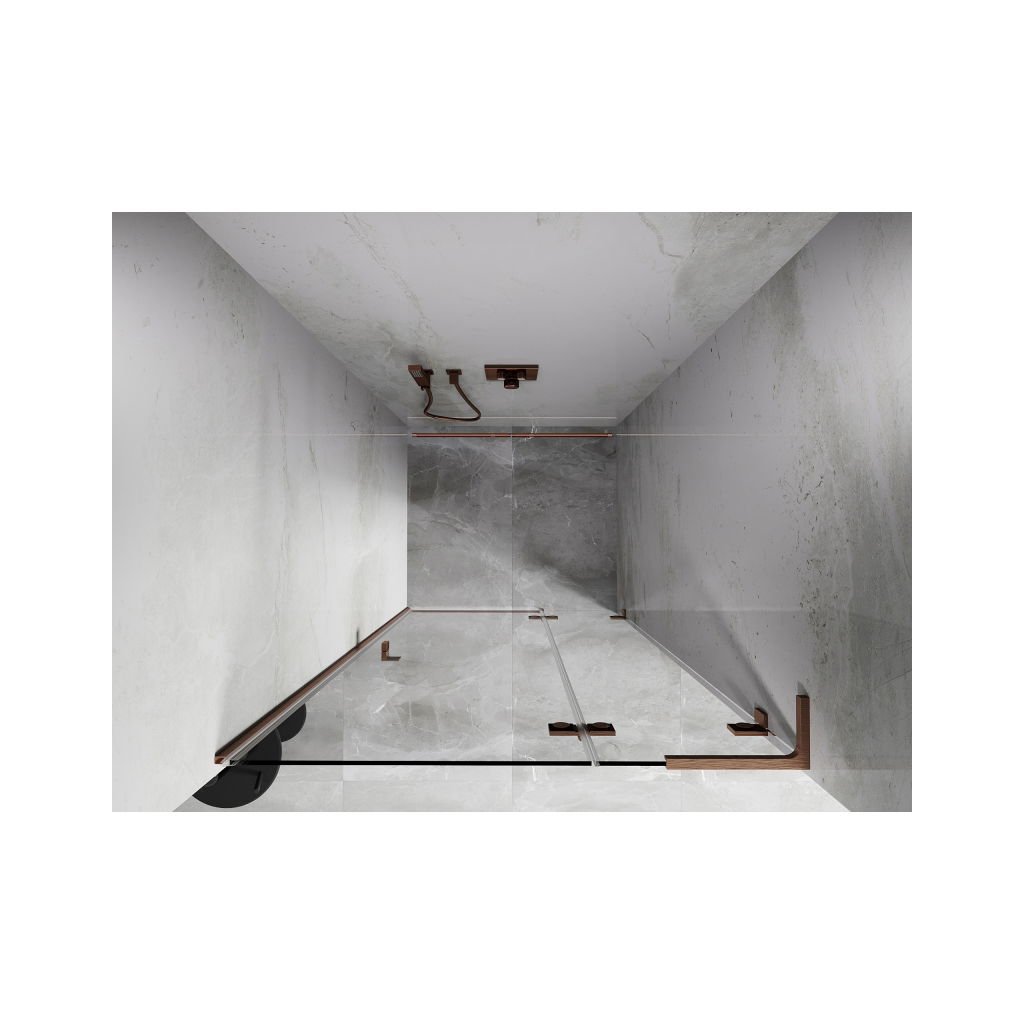 Mexen Lunar L, otočné sprchové dveře pravé 85 cm, 8mm čiré sklo, měděný matný profil, 834L-085-000-65-00-P