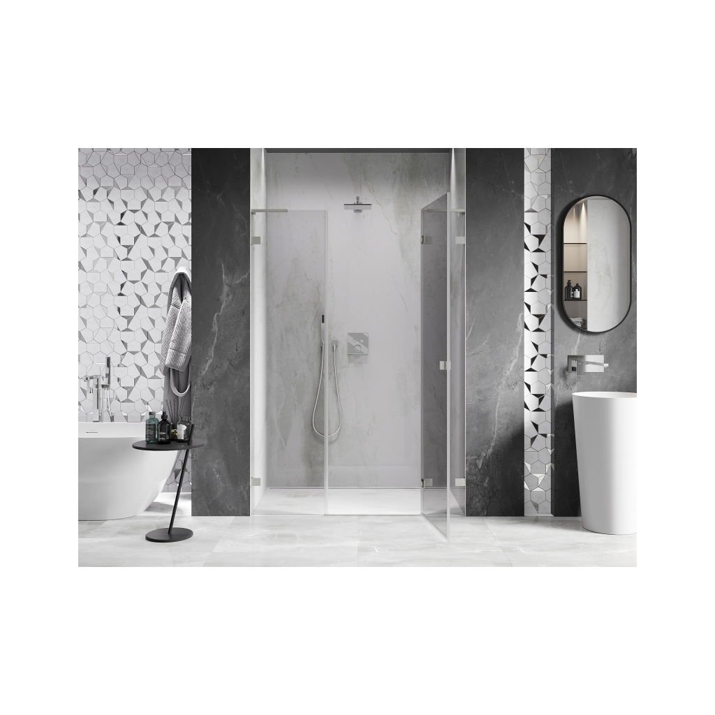 V konfiguraci více rozměrů nabízí stabilní konstrukci a výklopné (křídlové) dveře. Tvrzené sklo s povrchem EasyClean usnadňuje údržbu a profil v odstínu Broušený nikl zapadne do moderních koupelen.
